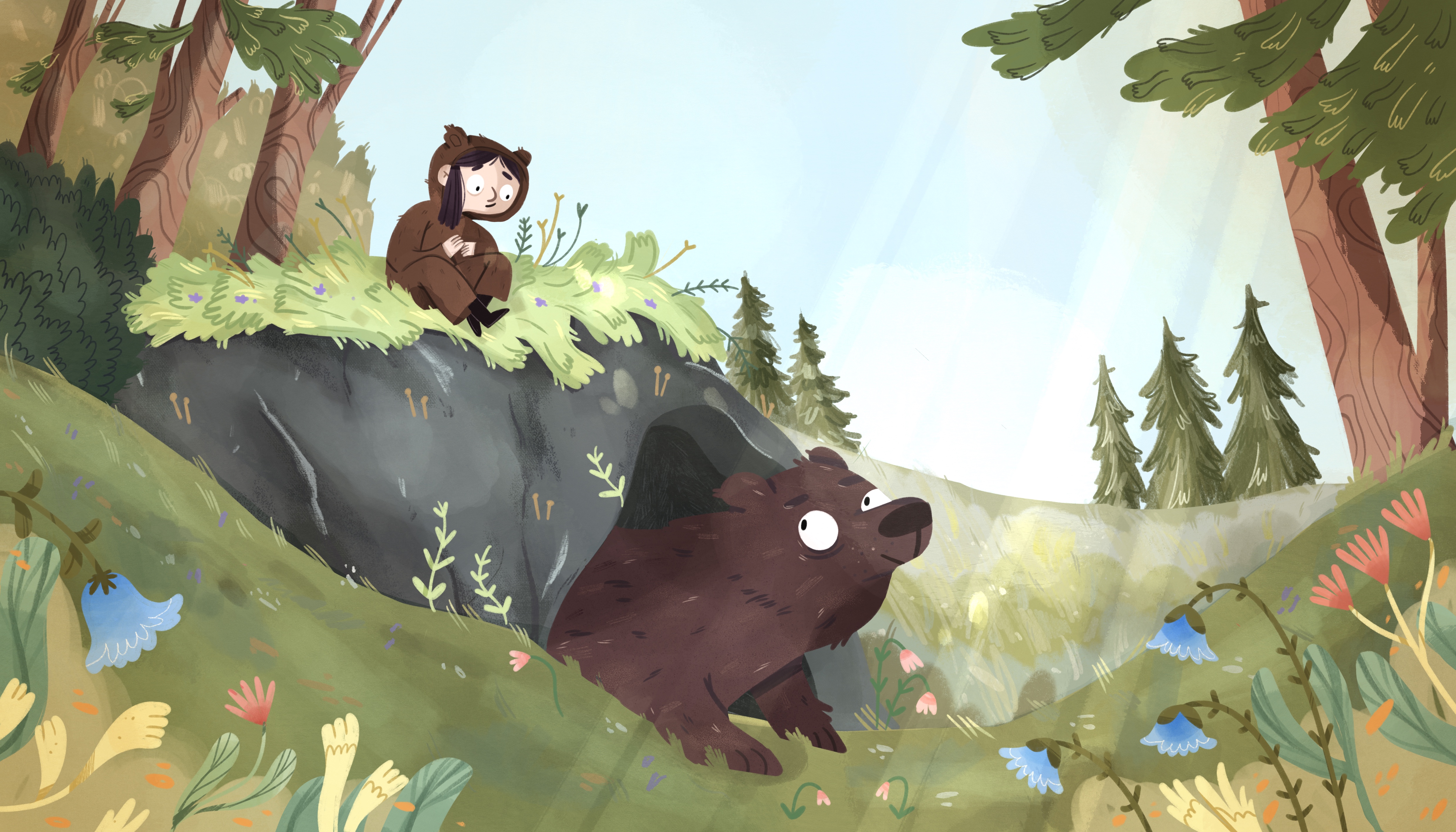 Louisa Kron lebt im Ruhrgebiet und arbeitet dort seit ihrem Abschluss in Kommunikationsdesign als freiberufliche Illustratorin für Kinderbücher und mehr. Für Verlage wie G&G, Beltz und Gelberg und moses. illustriert sie magische Welten voller kleiner Details. Alles, was ein bisschen gruselig ist und nachts umherspukt, liebt sie besonders. Wenn sie gerade keinen Stift in der Hand hält, backt sie veganen Kuchen oder sucht im Wald nach Dachsen.