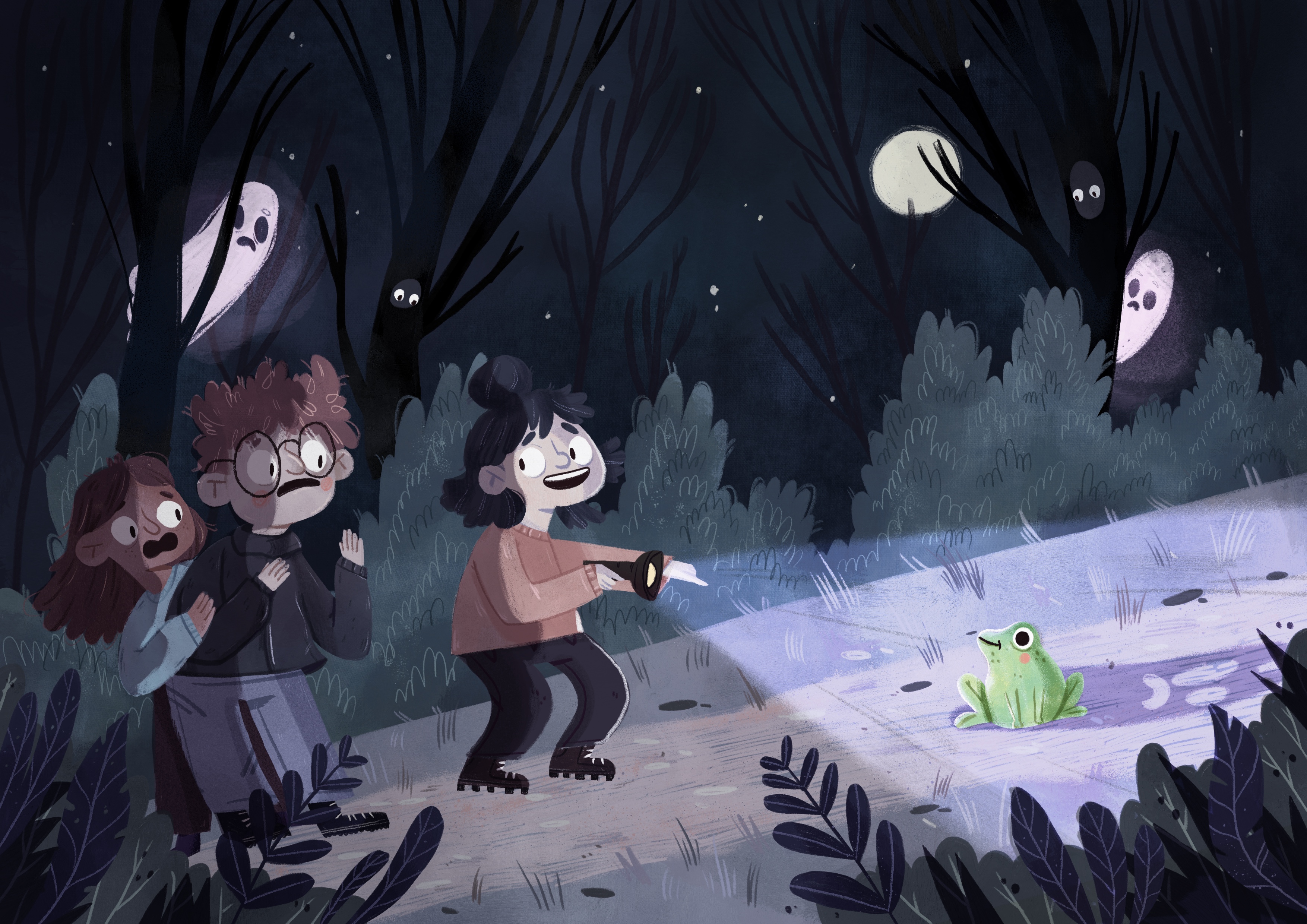 Louisa Kron lebt im Ruhrgebiet und arbeitet dort seit ihrem Abschluss in Kommunikationsdesign als freiberufliche Illustratorin für Kinderbücher und mehr. Für Verlage wie G&G, Beltz und Gelberg und moses. illustriert sie magische Welten voller kleiner Details. Alles, was ein bisschen gruselig ist und nachts umherspukt, liebt sie besonders. Wenn sie gerade keinen Stift in der Hand hält, backt sie veganen Kuchen oder sucht im Wald nach Dachsen.